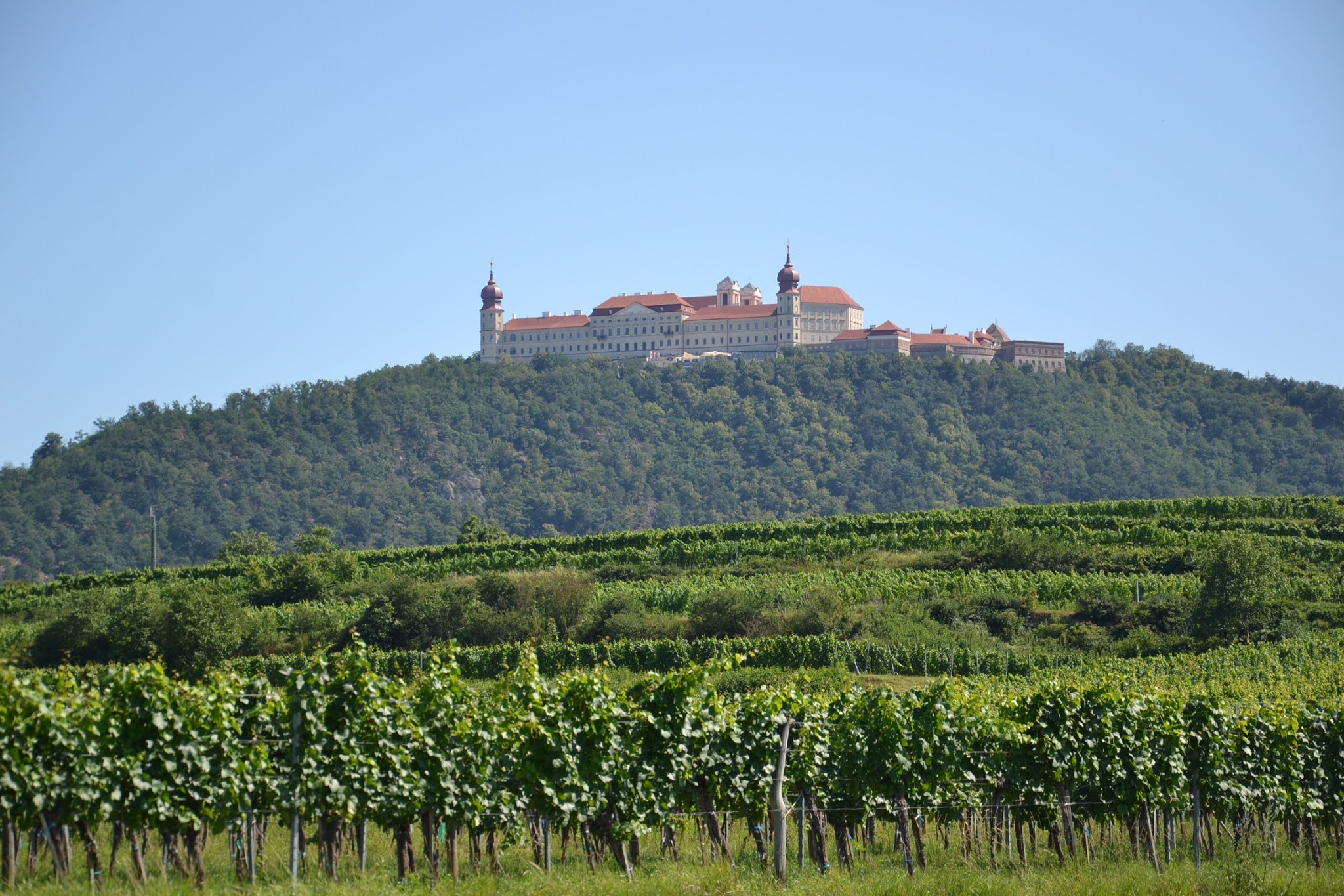 Le titre le plus populaire en Autriche, la fameuse valse est peut-être mensonger aujourd'hui. Le Danube n'est pas très bleu, mais sa couleur tire sur le vert. Ce fleuve est toujours aussi envoutant pour moi. Il est très large, emprunté par des bateaux. Nous le côtoyons un peu plus en amont que l'an dernier. La vallée de la Wachau est classée à l'UNESCO. Quelques belles églises à bulbe, des forteresses imprenables qui surveillent le fleuve, et surtout des vignobles en terrasse qui donnent paraît il de merveilleux blancs. Difficile d'y goûter, car nous avons plus de 30 degrés et pas de glacière pour le refroidir.